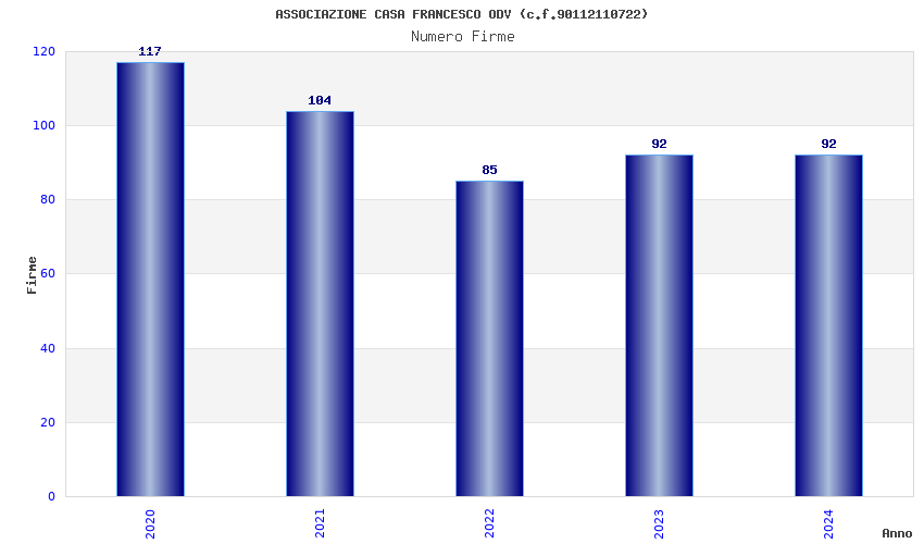 | Anno | Firme | Importi | Media | Naz. | Reg. | Prov. | Comu. |