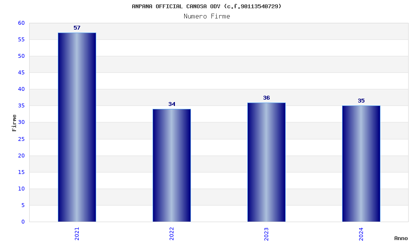 | Anno | Firme | Importi | Media | Naz. | Reg. | Prov. | Comu. |