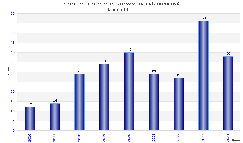 | Anno | Firme | Importi | Media | Naz. | Reg. | Prov. | Comu. |