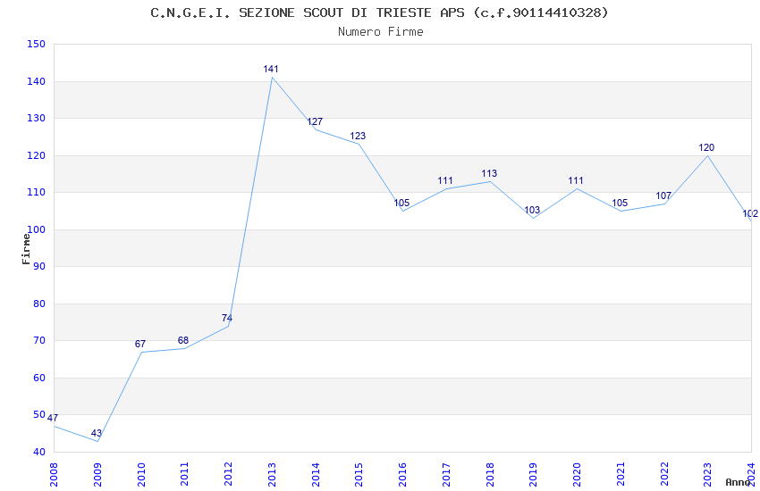 | 2024 | 102 | 3.300,79 | 32,36 | 16.005 | 326 | 71 | 60 |