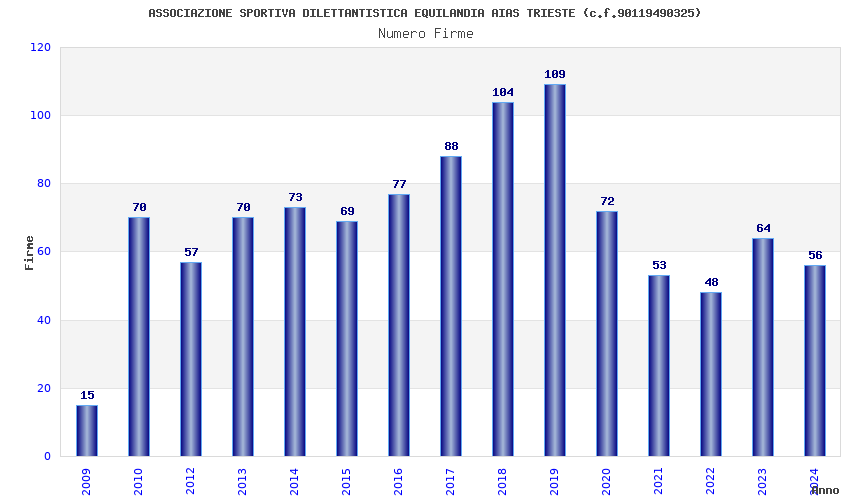 | 2019 | 109 | 3.427,75 | 31,45 | 15.784 | 332 | 72 | 2 |