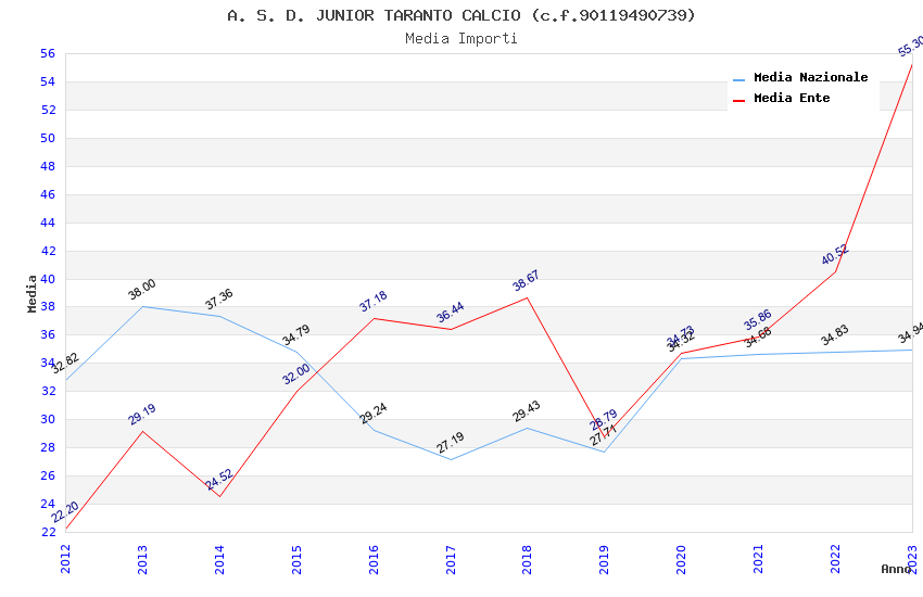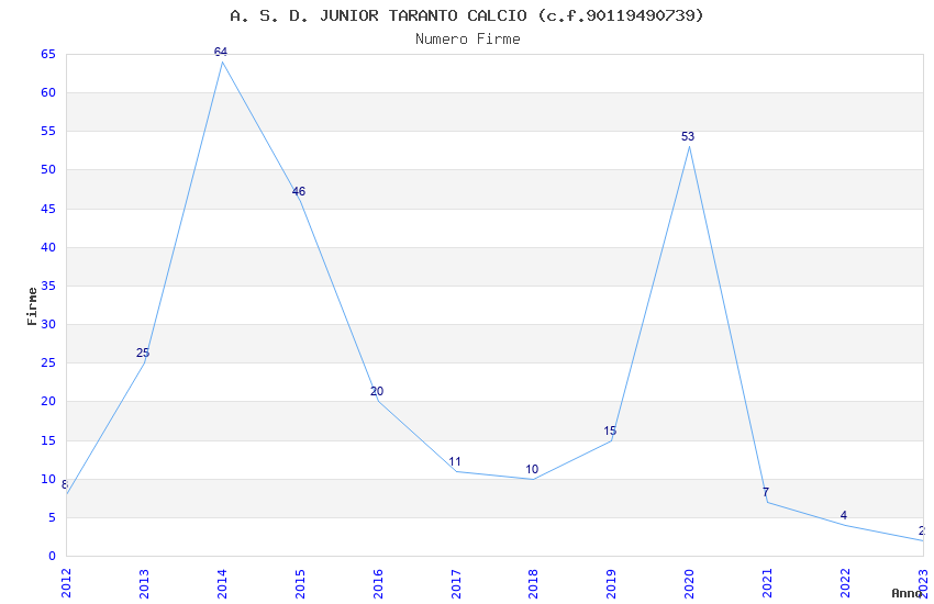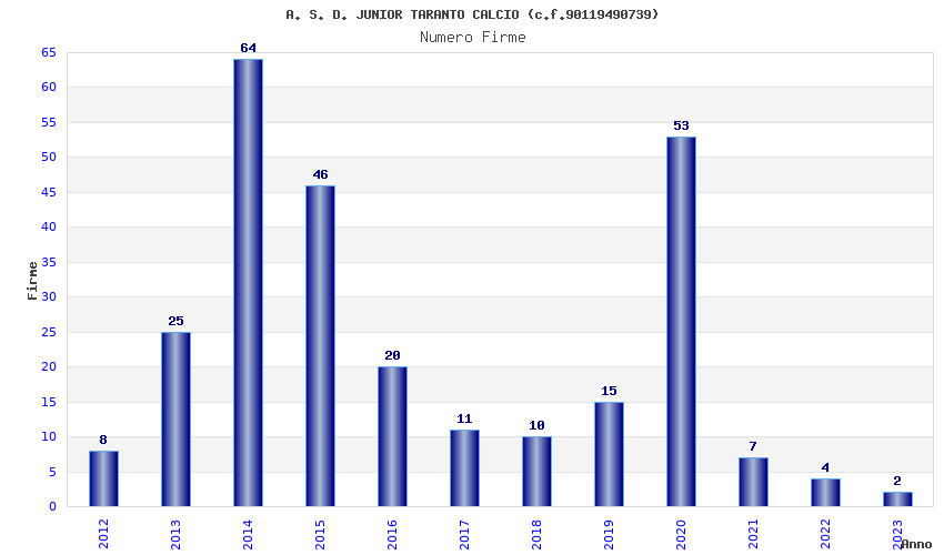 | Anno | Firme | Importi | Media | Naz. | Reg. | Prov. | Comu. |