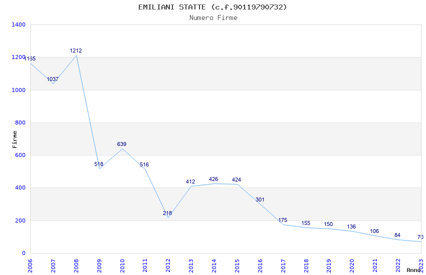 | 2023 | 70 | 2.587,24 | 36,96 | 19.457 | 1.035 | 140 | 2 |