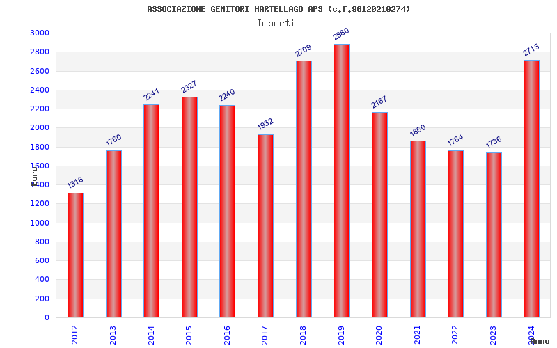 | Anno | Firme | Importi | Media | Naz. | Reg. | Prov. | Comu. |