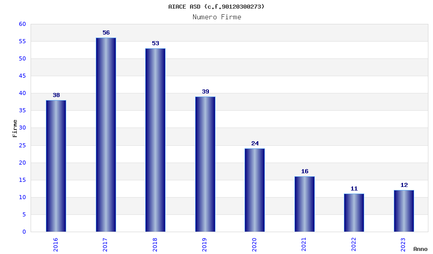 | Anno | Firme | Importi | Media | Naz. | Reg. | Prov. | Comu. |
