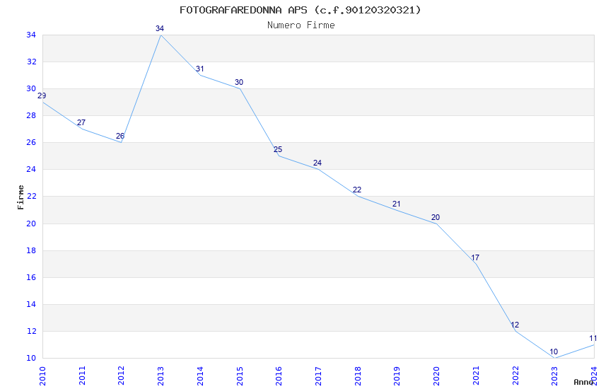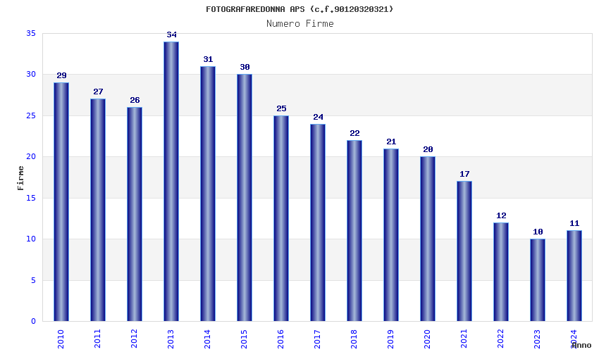 | Anno | Firme | Importi | Media | Naz. | Reg. | Prov. | Comu. |