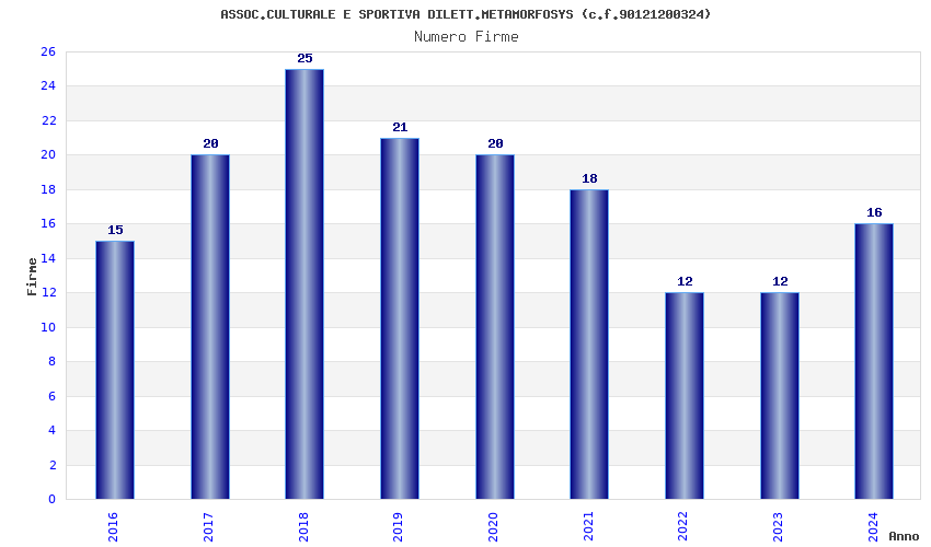 | Anno | Firme | Importi | Media | Naz. | Reg. | Prov. | Comu. |