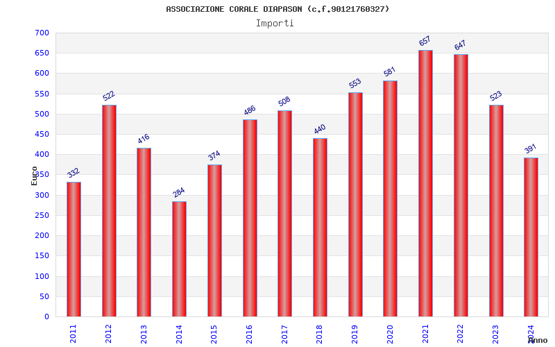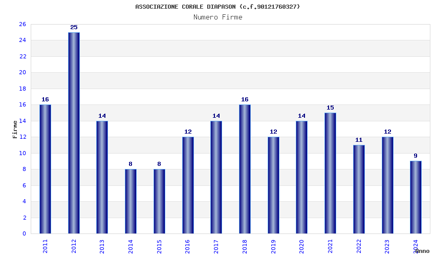 | Anno | Firme | Importi | Media | Naz. | Reg. | Prov. | Comu. |