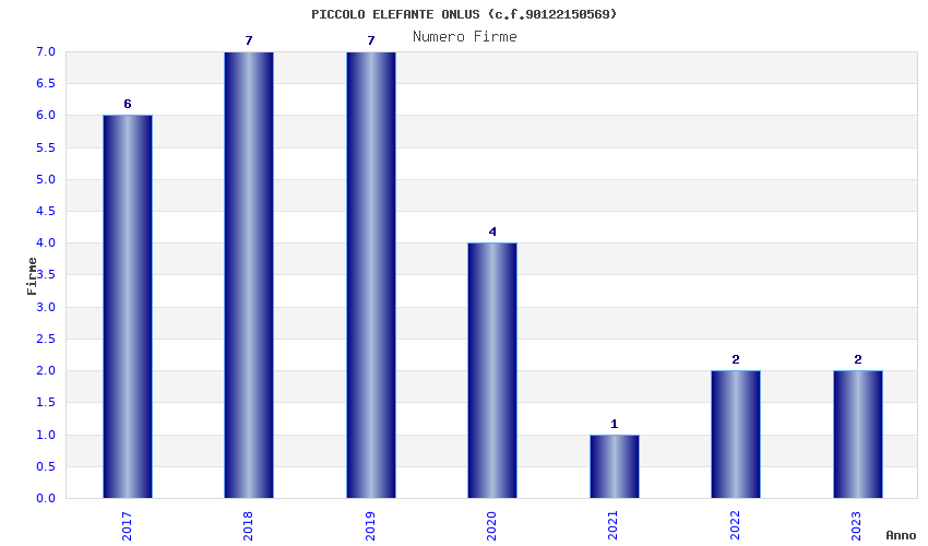 | Anno | Firme | Importi | Media | Naz. | Reg. | Prov. | Comu. |