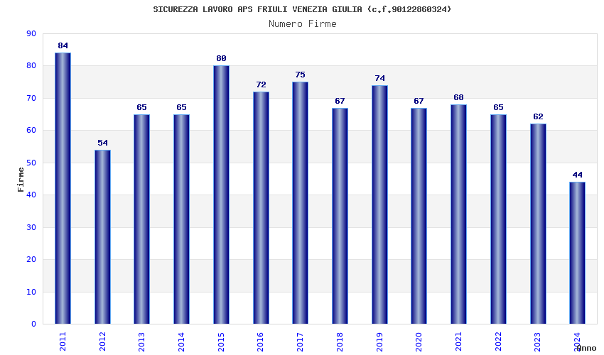 | Anno | Firme | Importi | Media | Naz. | Reg. | Prov. | Comu. |