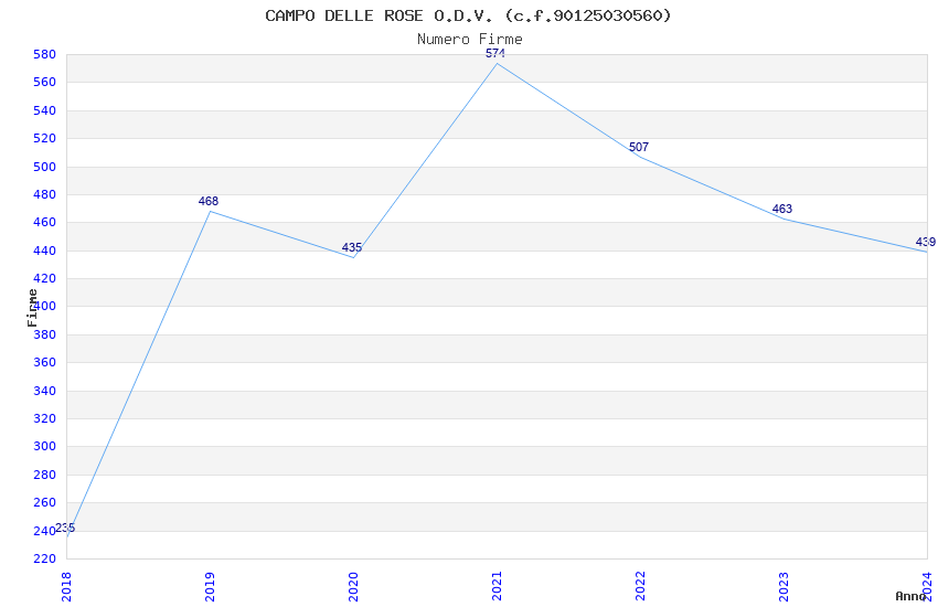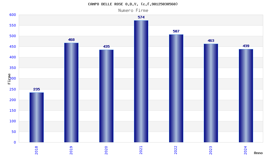 | Anno | Firme | Importi | Media | Naz. | Reg. | Prov. | Comu. |