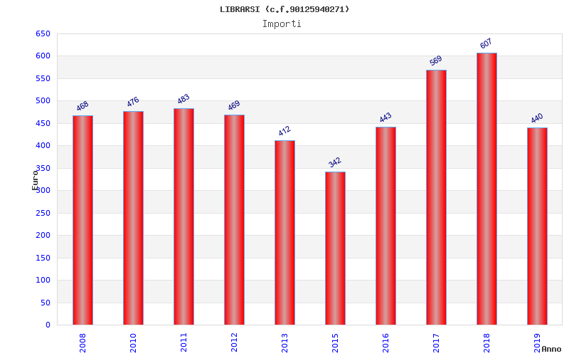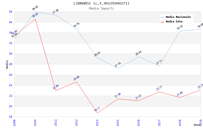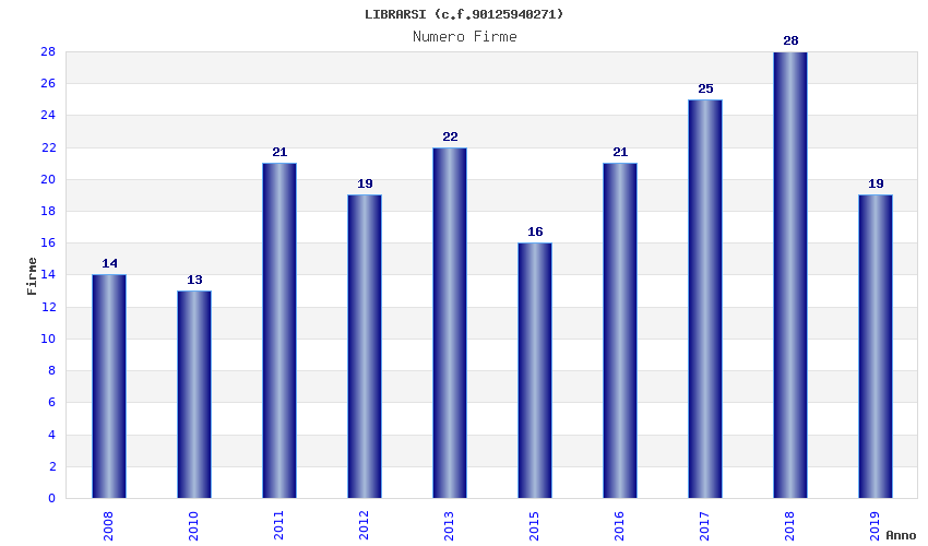 | Anno | Firme | Importi | Media | Naz. | Reg. | Prov. | Comu. |