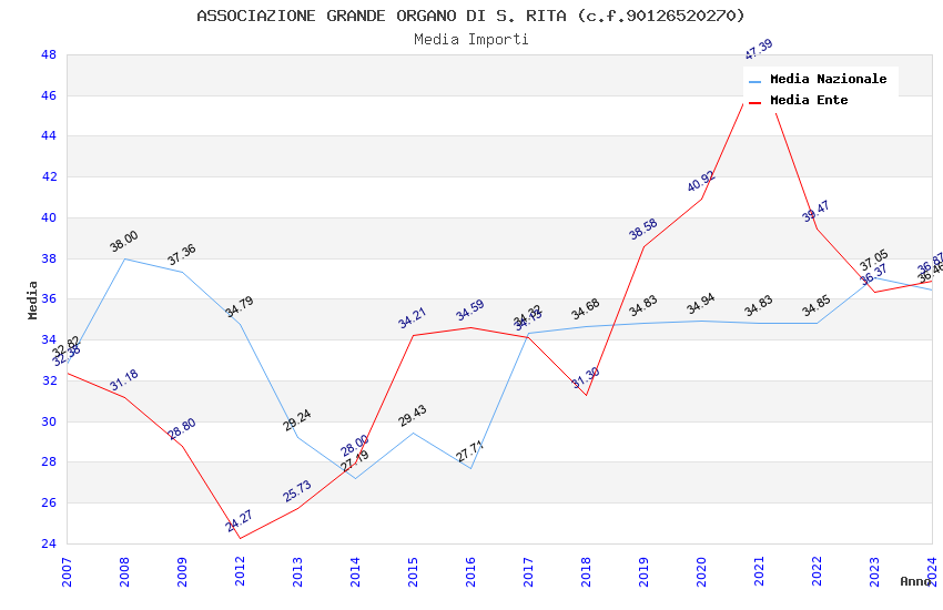 | Anno | Firme | Importi | Media | Naz. | Reg. | Prov. | Comu. |