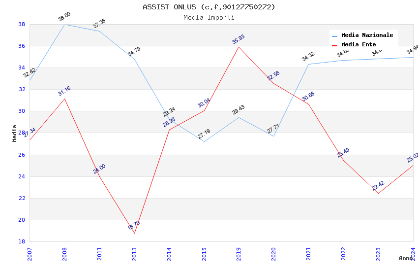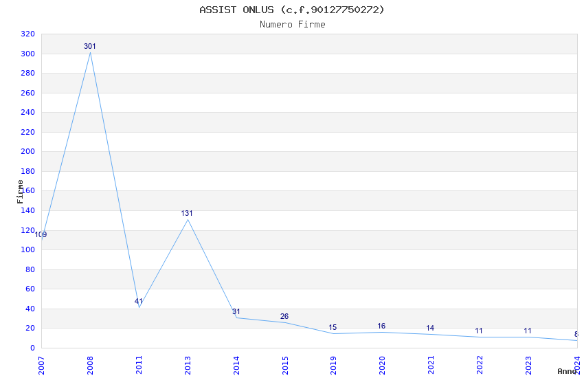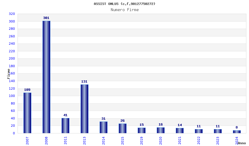 | Anno | Firme | Importi | Media | Naz. | Reg. | Prov. | Comu. |