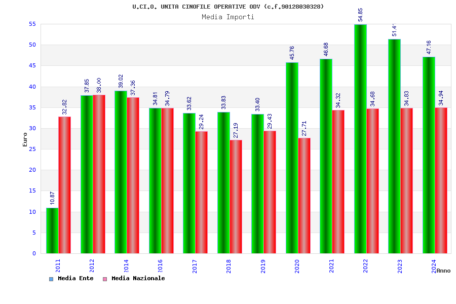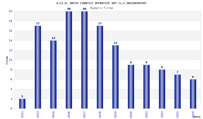 | Anno | Firme | Importi | Media | Naz. | Reg. | Prov. | Comu. |