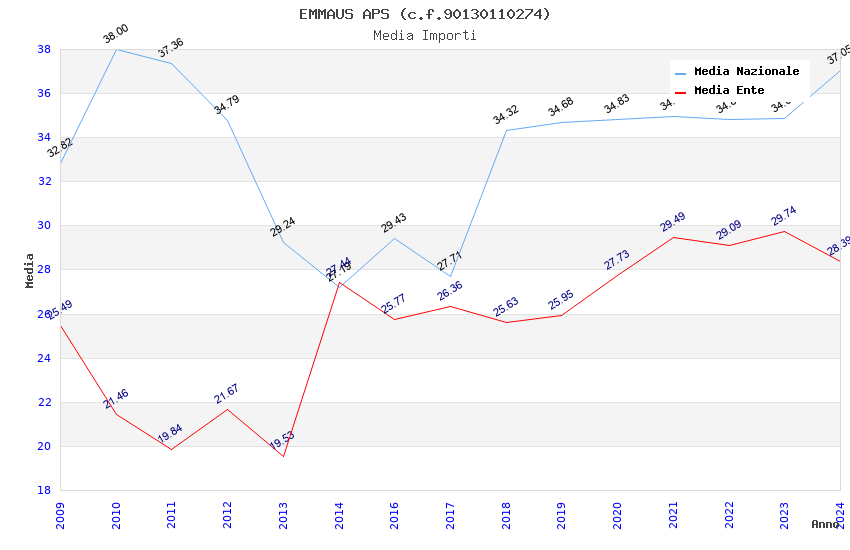 | Anno | Firme | Importi | Media | Naz. | Reg. | Prov. | Comu. |