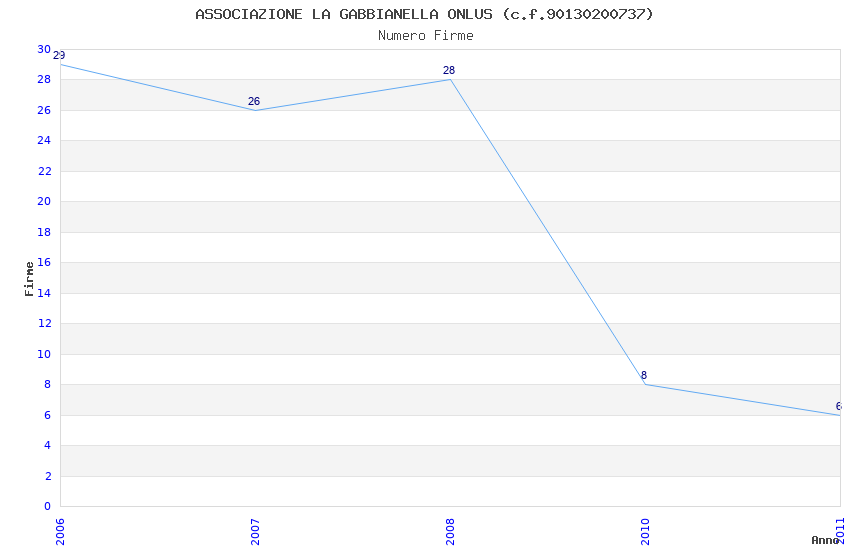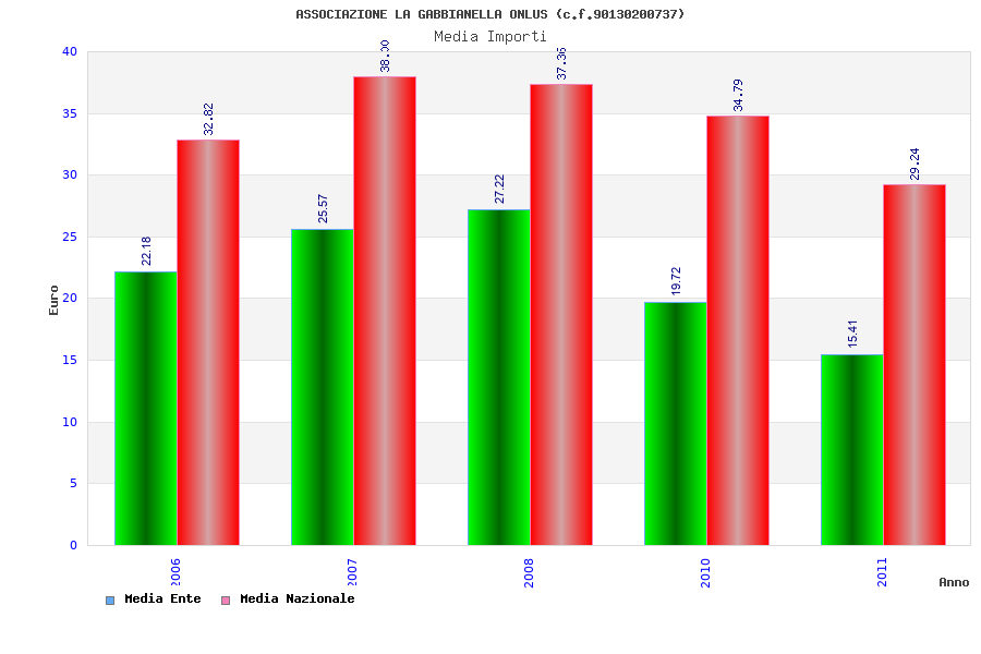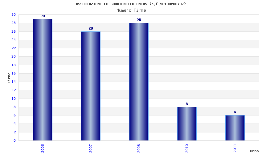 | Anno | Firme | Importi | Media | Naz. | Reg. | Prov. | Comu. |