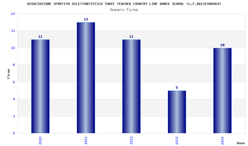 | Anno | Firme | Importi | Media | Naz. | Reg. | Prov. | Comu. |