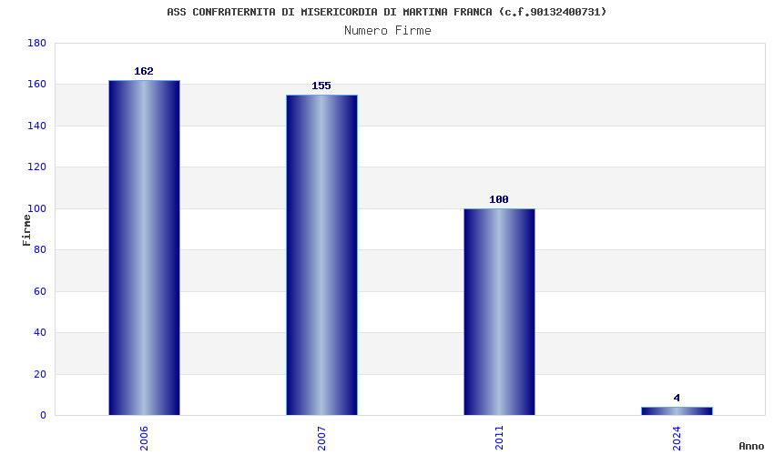 | Anno | Firme | Importi | Media | Naz. | Reg. | Prov. | Comu. |