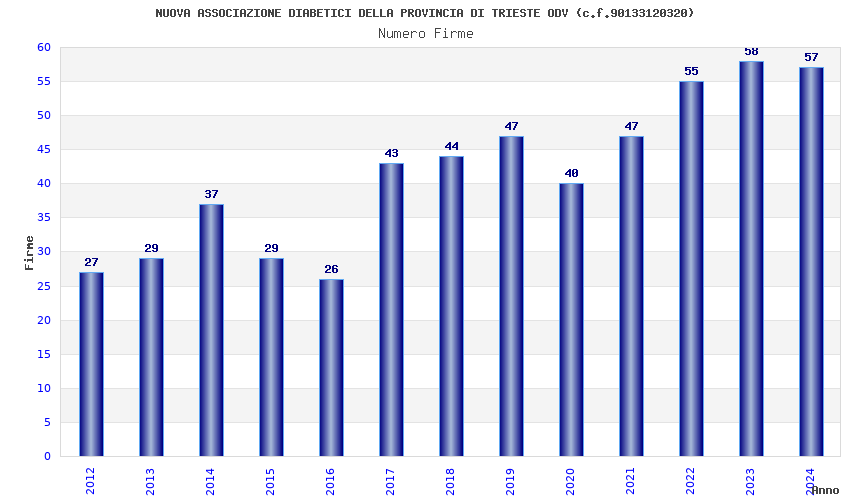 | Anno | Firme | Importi | Media | Naz. | Reg. | Prov. | Comu. |