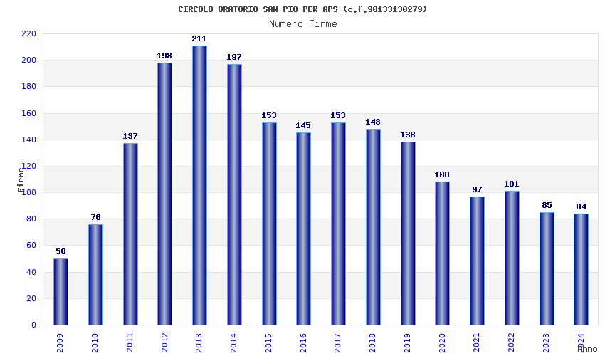 | Anno | Firme | Importi | Media | Naz. | Reg. | Prov. | Comu. |