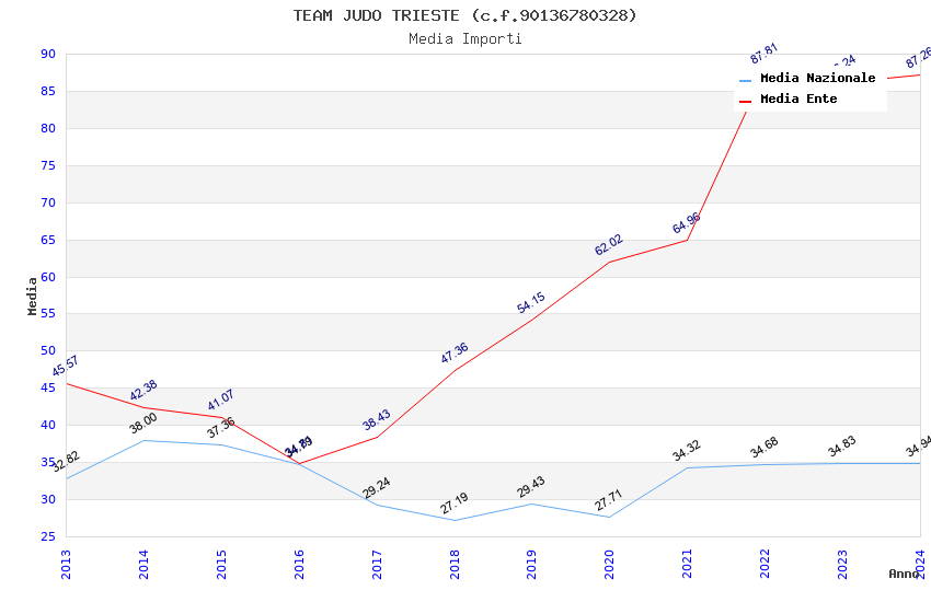 | Anno | Firme | Importi | Media | Naz. | Reg. | Prov. | Comu. |