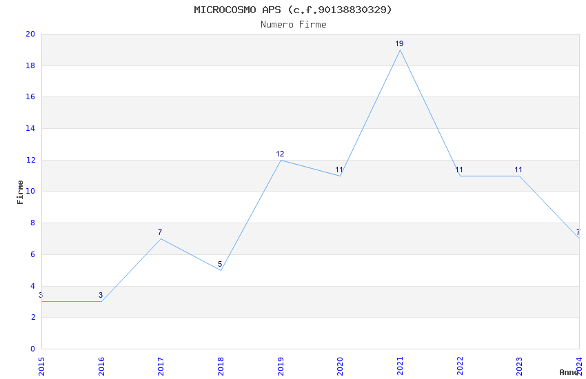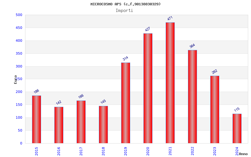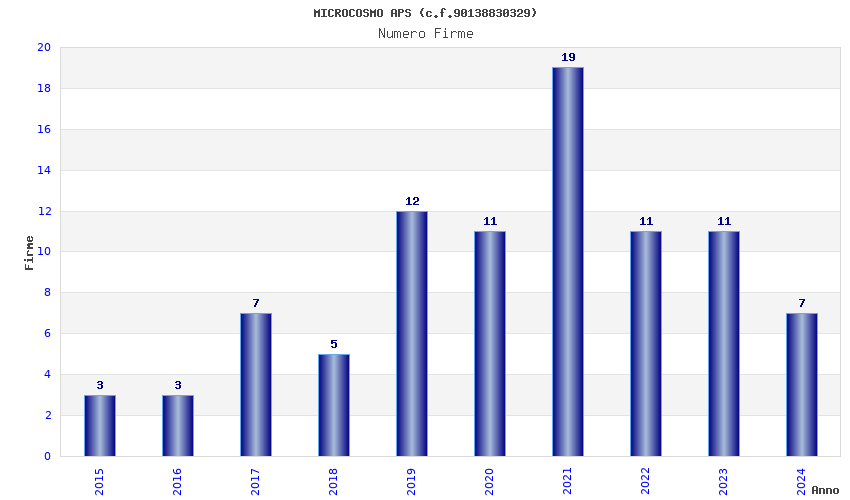 | Anno | Firme | Importi | Media | Naz. | Reg. | Prov. | Comu. |