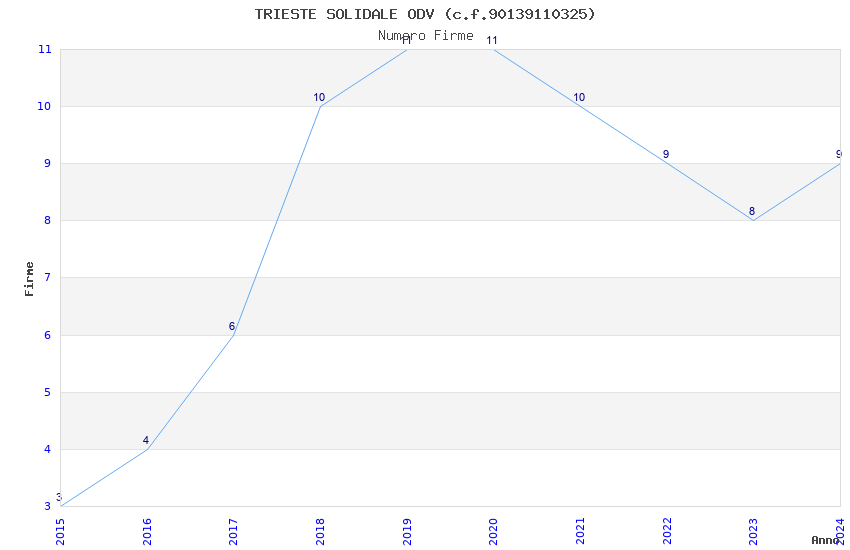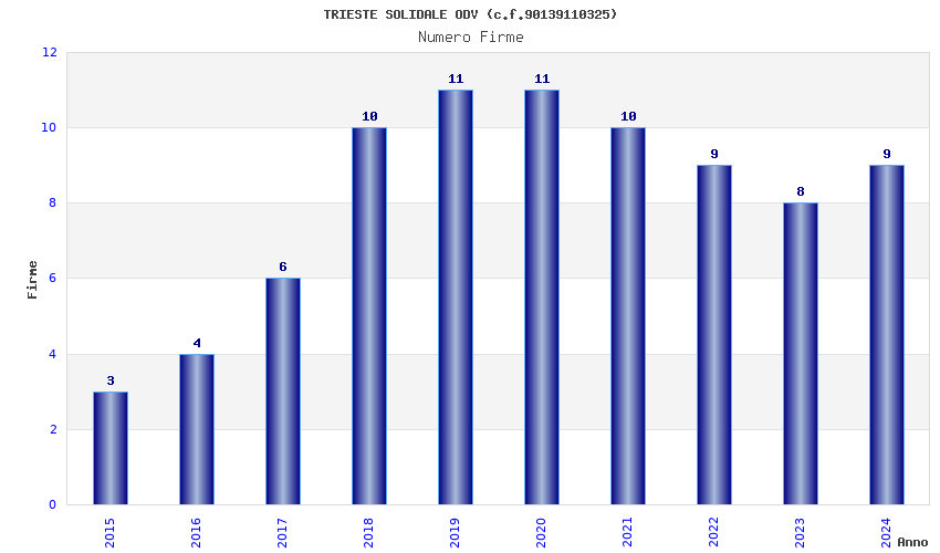 | Anno | Firme | Importi | Media | Naz. | Reg. | Prov. | Comu. |