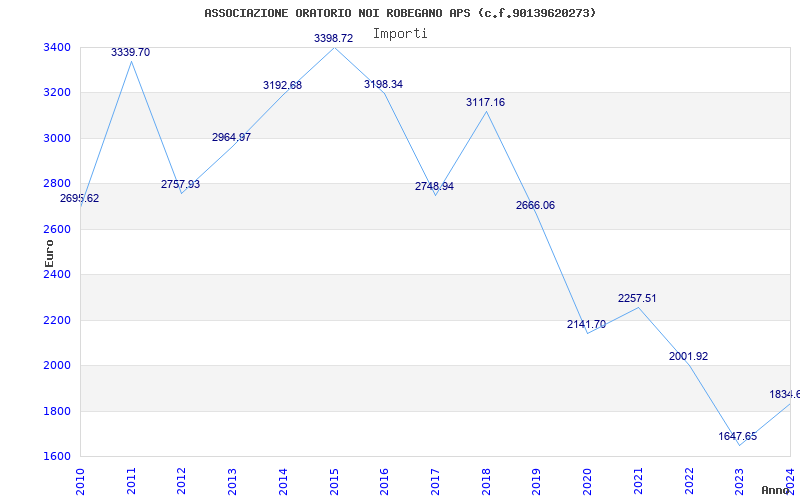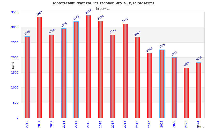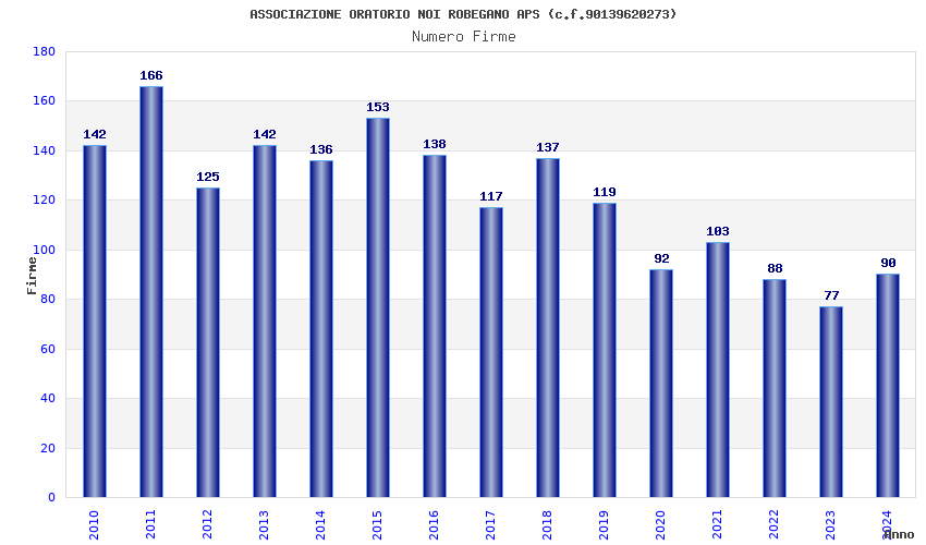 | Anno | Firme | Importi | Media | Naz. | Reg. | Prov. | Comu. |