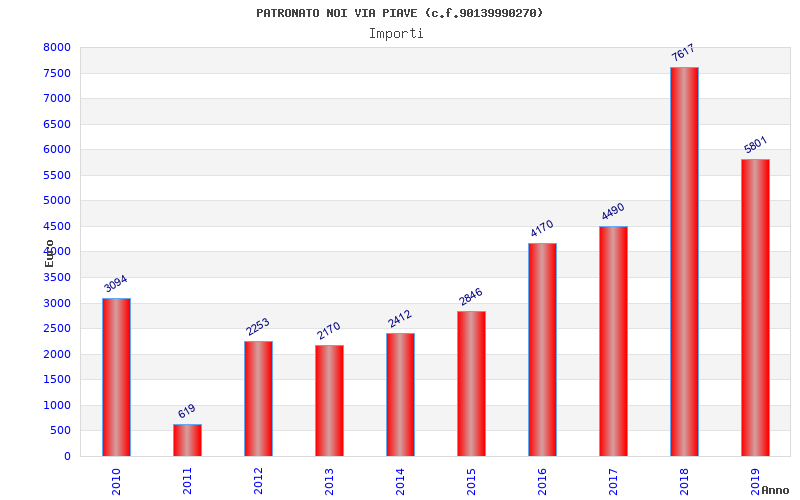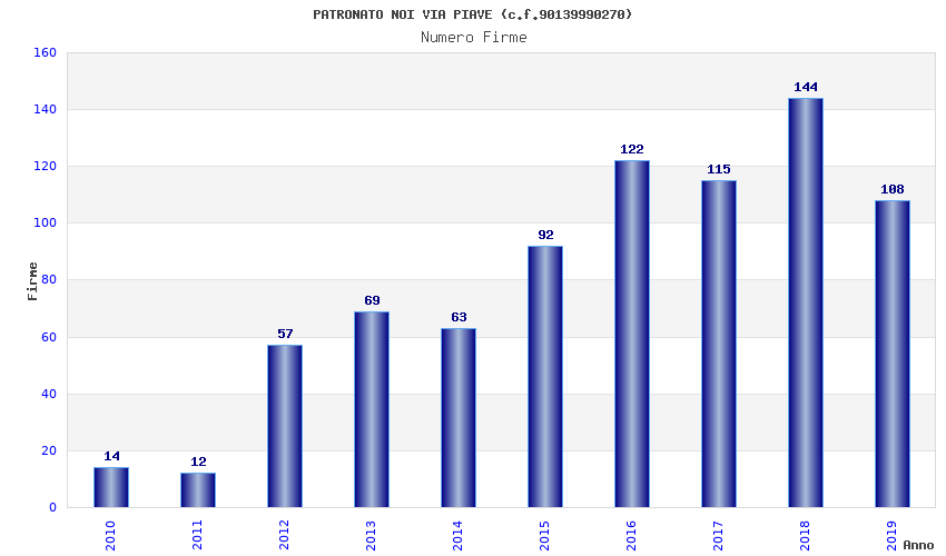 | Anno | Firme | Importi | Media | Naz. | Reg. | Prov. | Comu. |