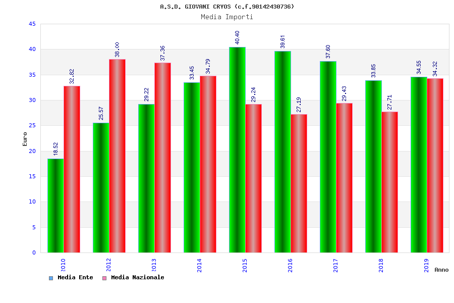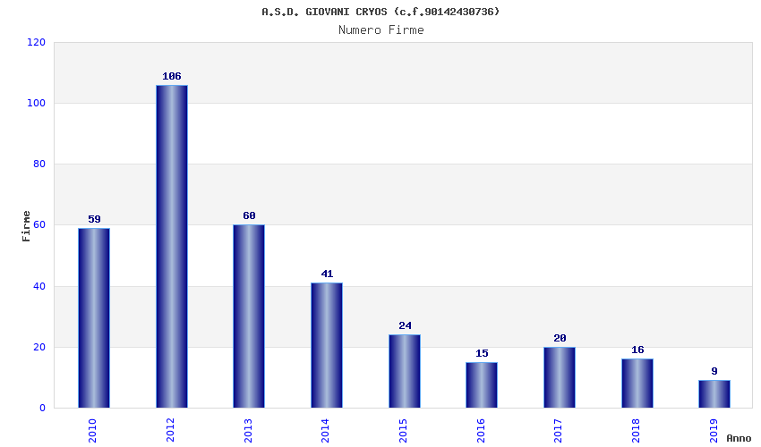 | Anno | Firme | Importi | Media | Naz. | Reg. | Prov. | Comu. |