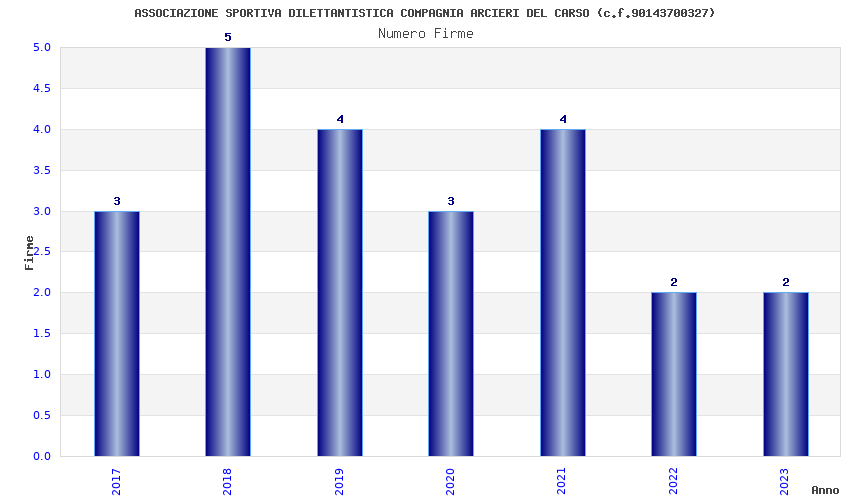 | Anno | Firme | Importi | Media | Naz. | Reg. | Prov. | Comu. |