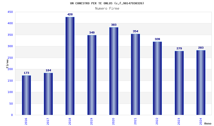 | Anno | Firme | Importi | Media | Naz. | Reg. | Prov. | Comu. |