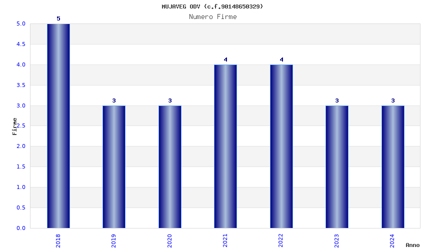 | Anno | Firme | Importi | Media | Naz. | Reg. | Prov. | Comu. |