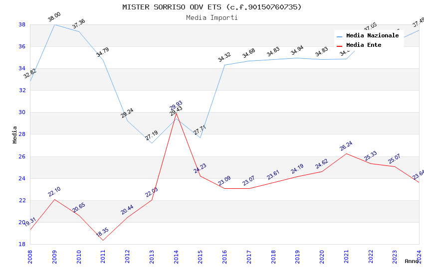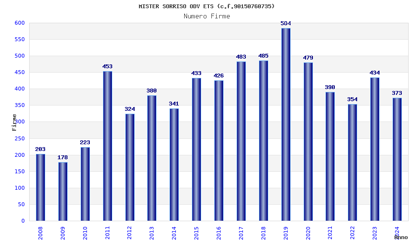 | Anno | Firme | Importi | Media | Naz. | Reg. | Prov. | Comu. |