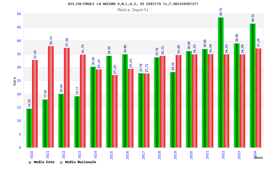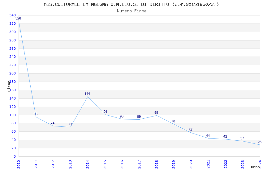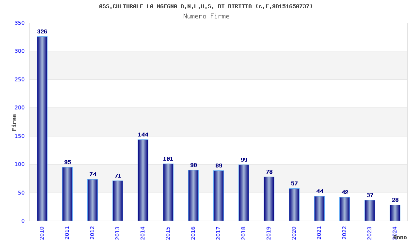 | Anno | Firme | Importi | Media | Naz. | Reg. | Prov. | Comu. |