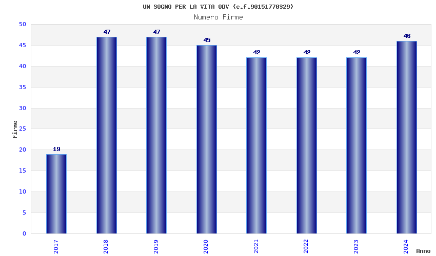 | Anno | Firme | Importi | Media | Naz. | Reg. | Prov. | Comu. |