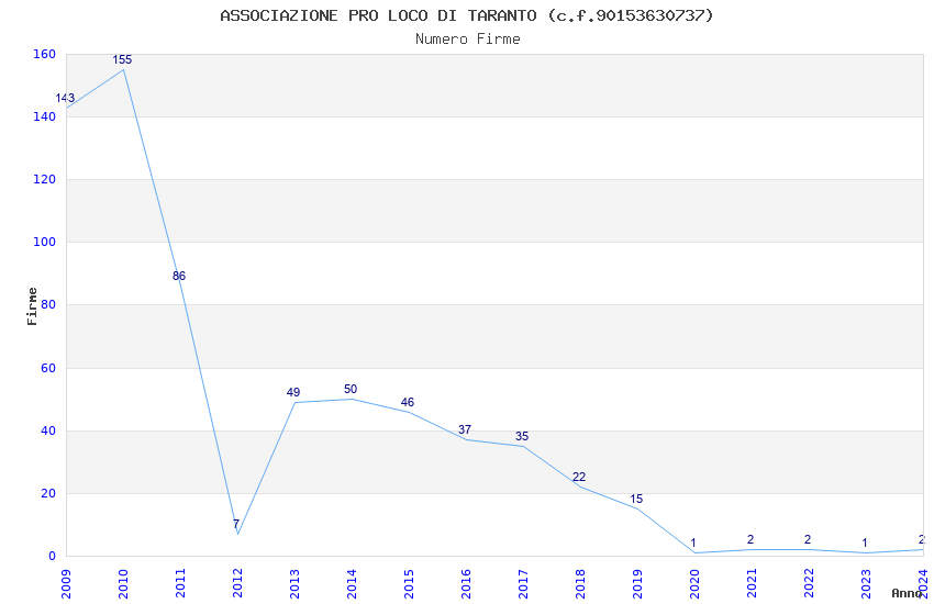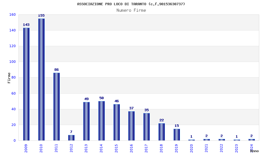 | Anno | Firme | Importi | Media | Naz. | Reg. | Prov. | Comu. |