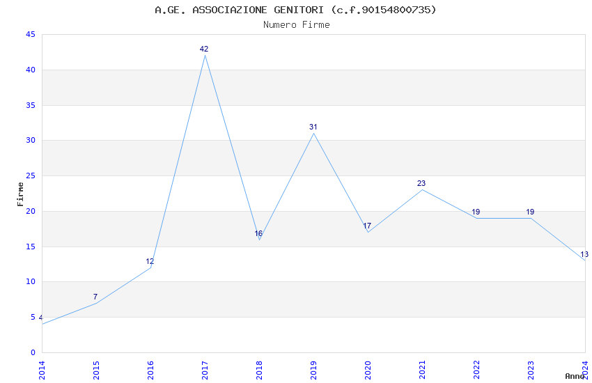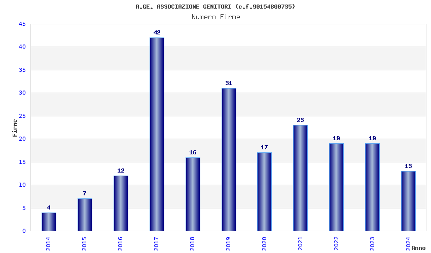 | Anno | Firme | Importi | Media | Naz. | Reg. | Prov. | Comu. |