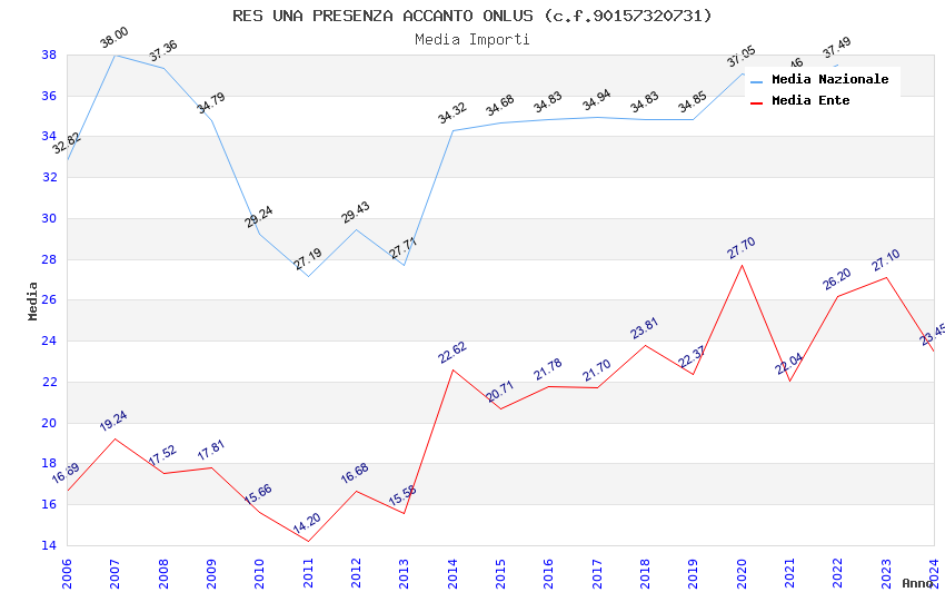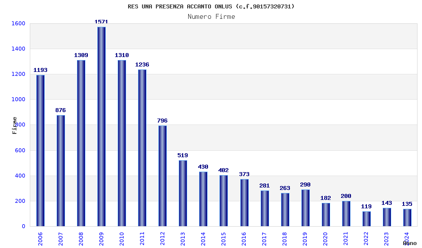 | Anno | Firme | Importi | Media | Naz. | Reg. | Prov. | Comu. |