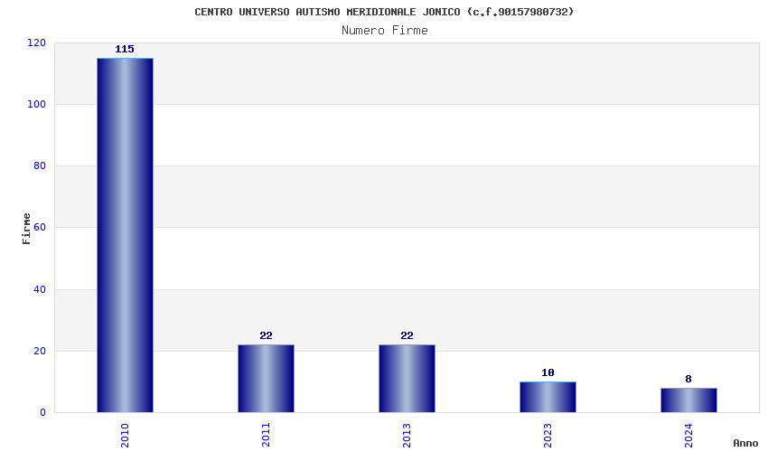 | Anno | Firme | Importi | Media | Naz. | Reg. | Prov. | Comu. |