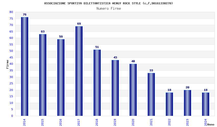 | Anno | Firme | Importi | Media | Naz. | Reg. | Prov. | Comu. |
