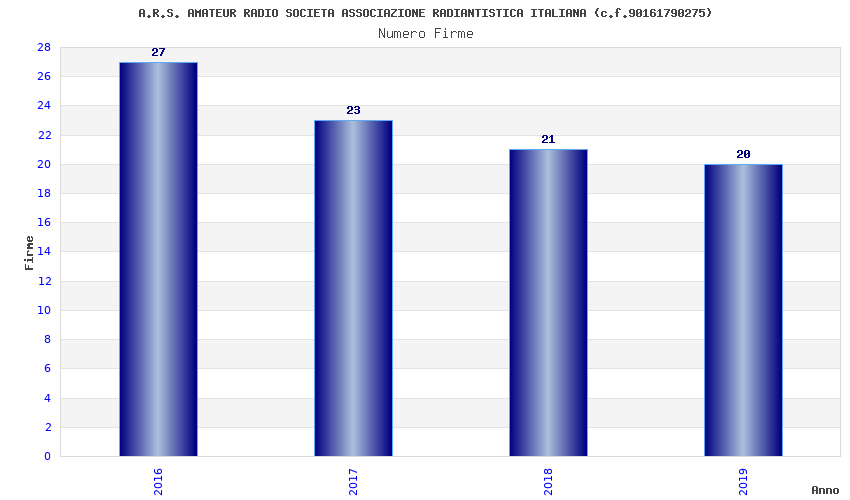 | Anno | Firme | Importi | Media | Naz. | Reg. | Prov. | Comu. |