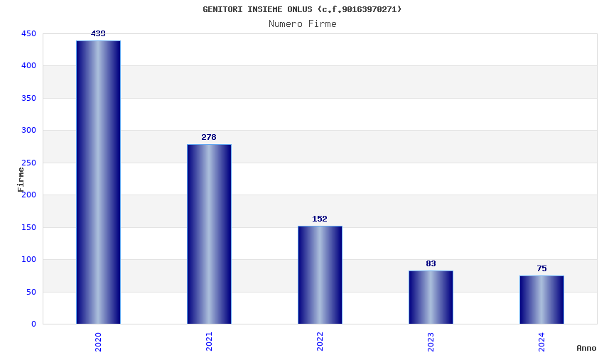 | Anno | Firme | Importi | Media | Naz. | Reg. | Prov. | Comu. |