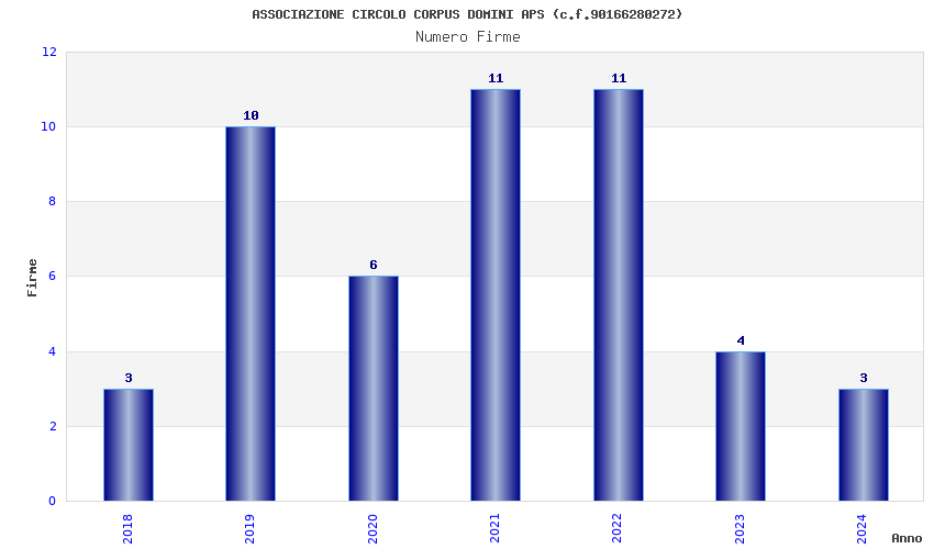 | Anno | Firme | Importi | Media | Naz. | Reg. | Prov. | Comu. |