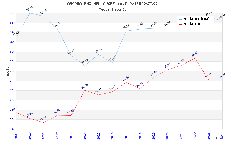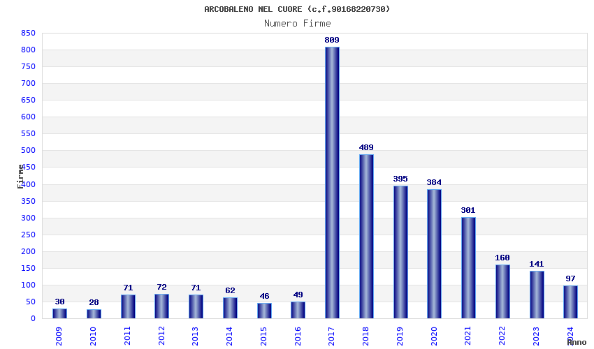 | Anno | Firme | Importi | Media | Naz. | Reg. | Prov. | Comu. |