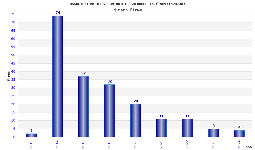 | Anno | Firme | Importi | Media | Naz. | Reg. | Prov. | Comu. |