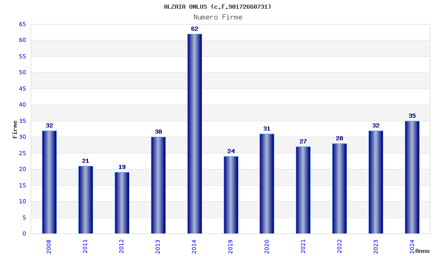 | Anno | Firme | Importi | Media | Naz. | Reg. | Prov. | Comu. |