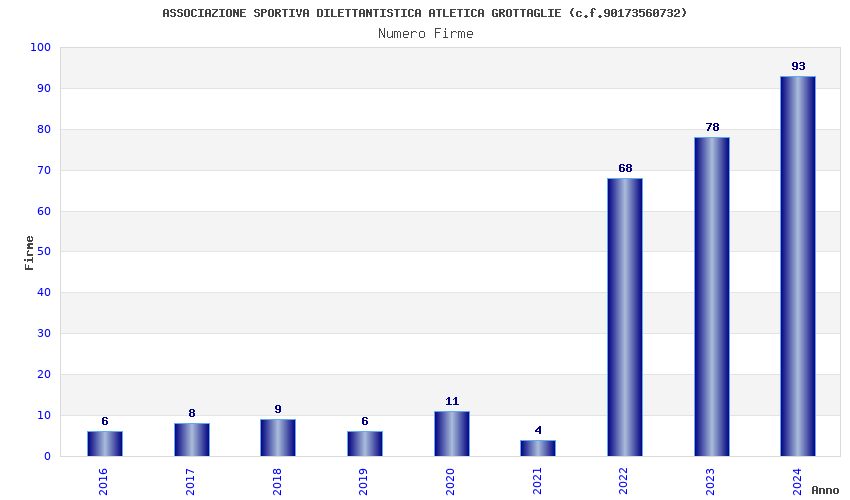 | Anno | Firme | Importi | Media | Naz. | Reg. | Prov. | Comu. |