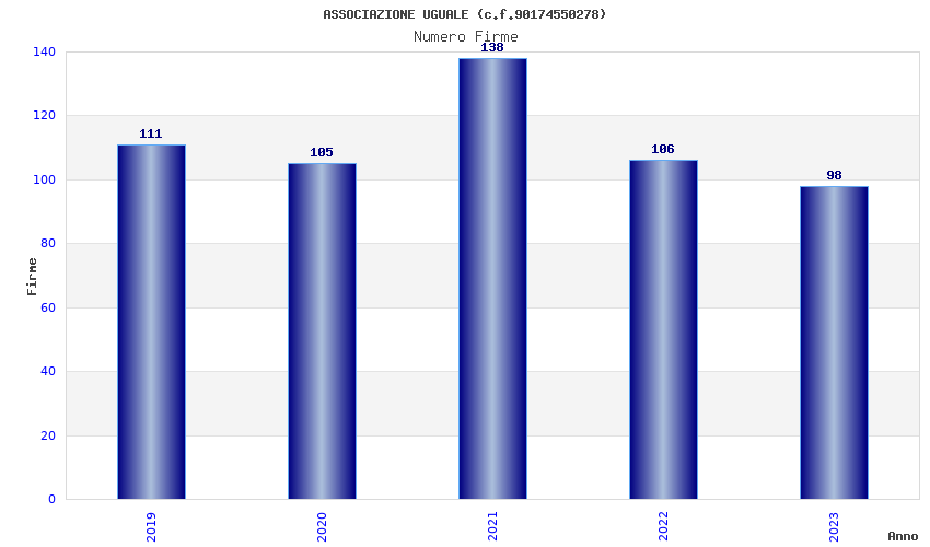 | Anno | Firme | Importi | Media | Naz. | Reg. | Prov. | Comu. |